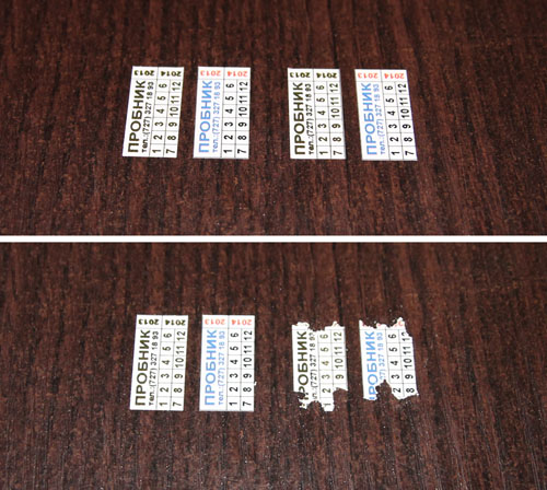 Принцип действия пломбы - стикеры наклеиваются на предмет, и любая попытка несанкционированного вскрытия приводит к необратимому изменению внешнего вида наклейки (она саморазрушается, крошится).